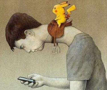 El peso promedio de la cabeza en una posición neutral es de 5 Kg, cuando la flexionamos a 60 grados, la cabeza le pesa a nuestra columna 27 Kg, ahora imagina si además traemos un Pokemon cargando.